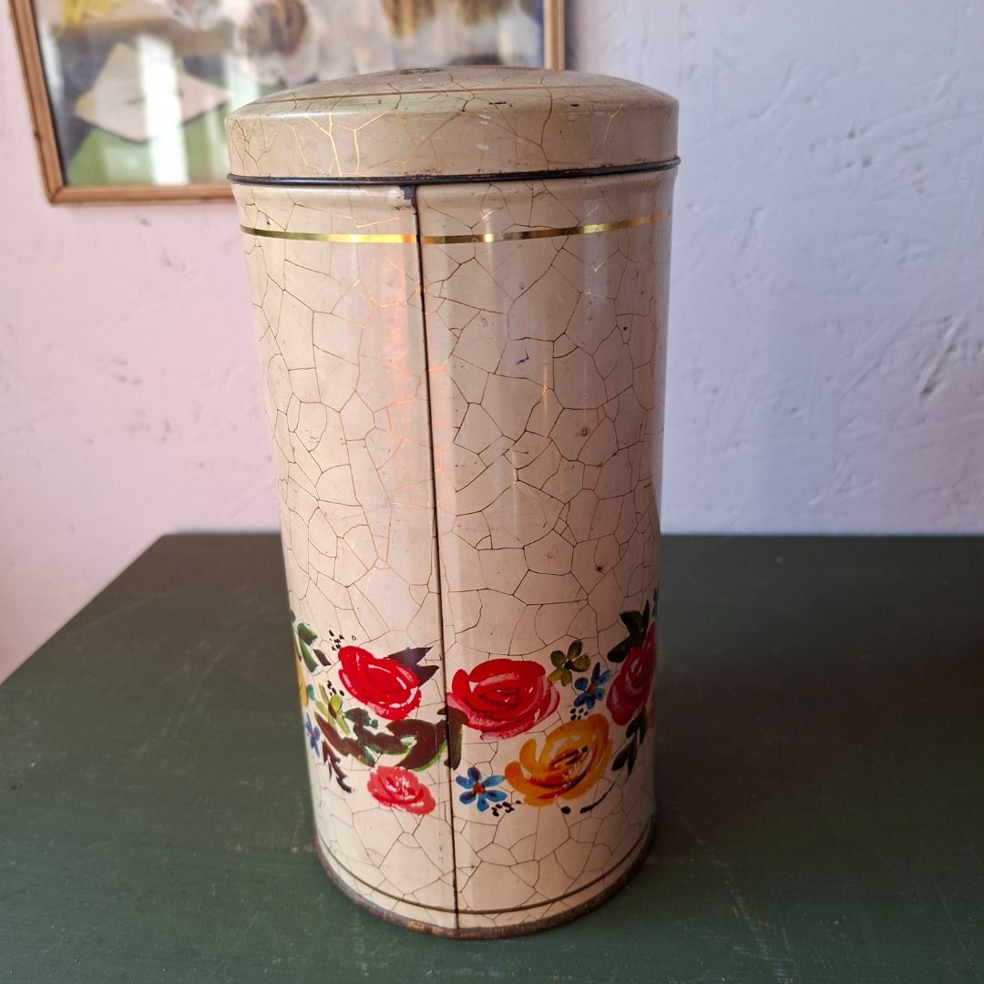 Beschuitjes in een creme kleur met bloemen en gouden craquelé. De hoogte is 21 cm.