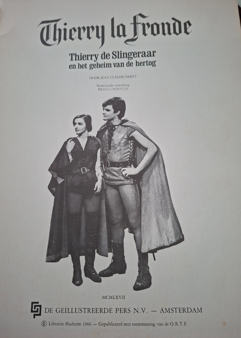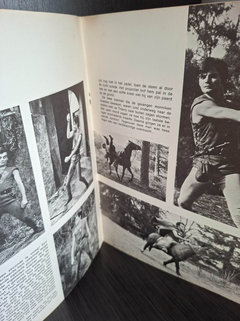 Boekje uit de jaren 60 van Thierry de Slingeraar die ook als serie op de tv was. Het is in goede staat. Het heeft veel zwart-wit foto's van de serie. De afmeting is 30 x 21,5 cm.