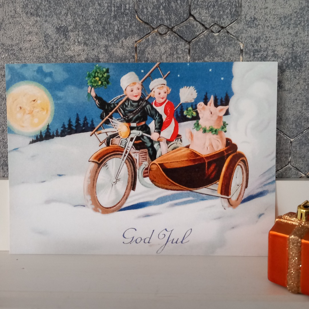 Zweedse kerstkaart, oude afbeelding maar nieuw gemaakt. De afmeting is 21 x 15 cm.