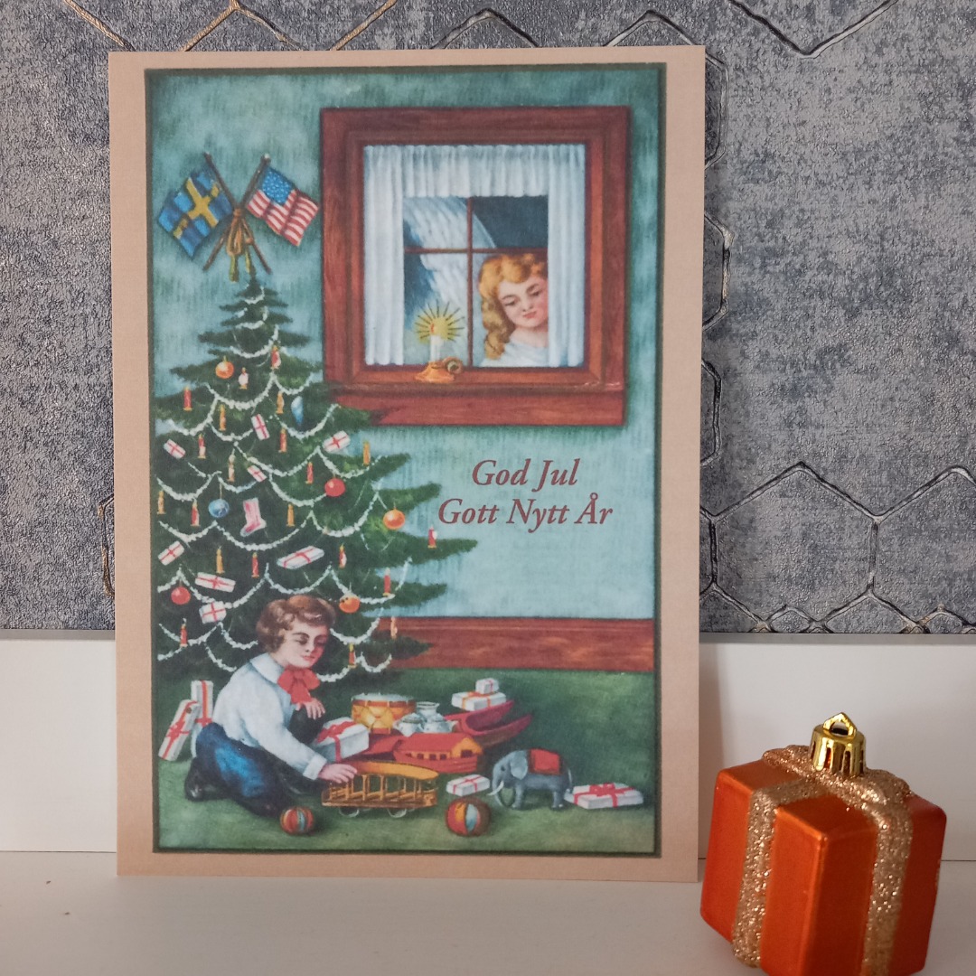 Nieuwe zweedse kerstkaart met een oude afbeelding.  De maat is 21 x 15 cm.