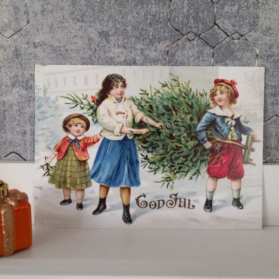 Nieuwe kerst ansichtkaart uit Zweden met een oude afbeelding. De maat is 21 x 15 cm.