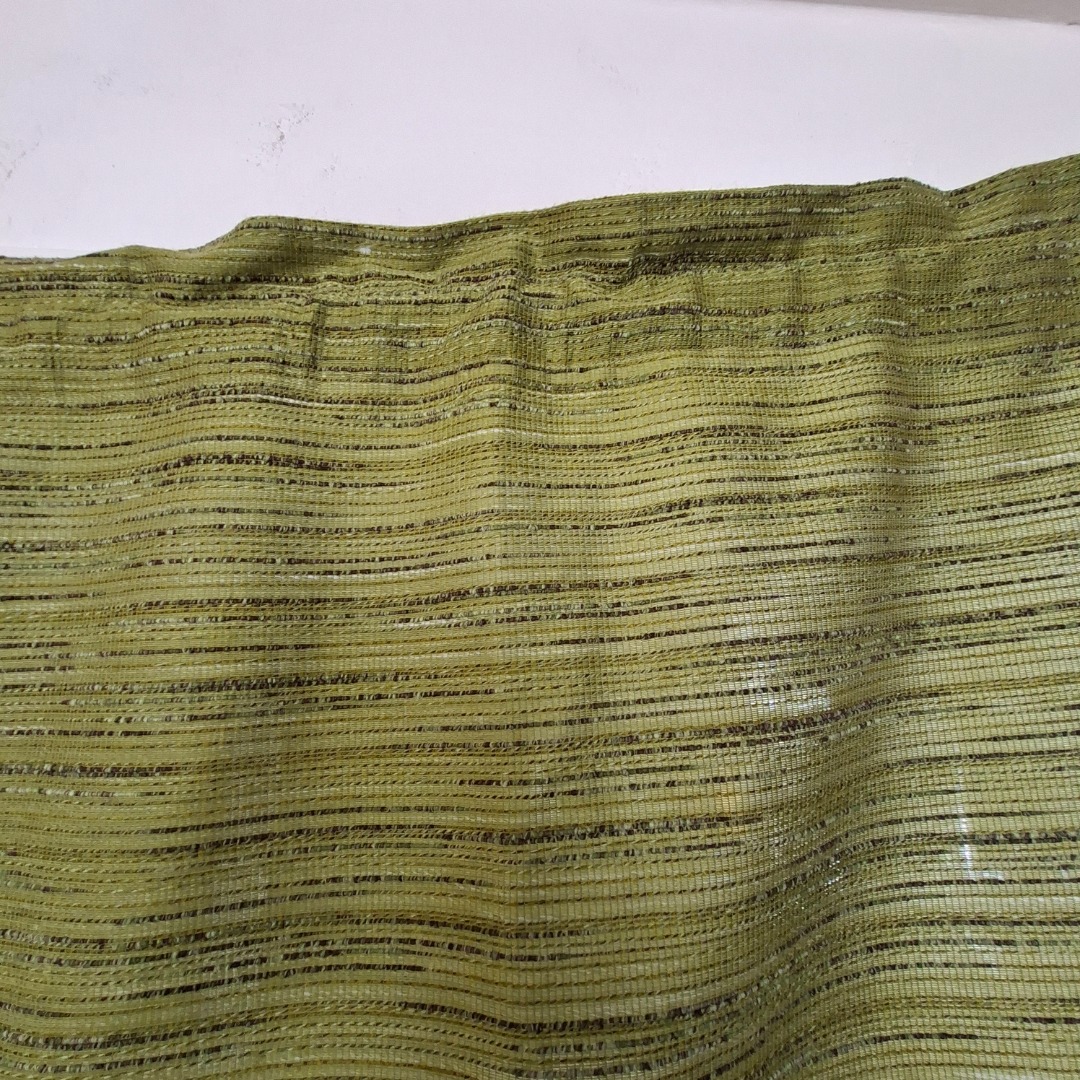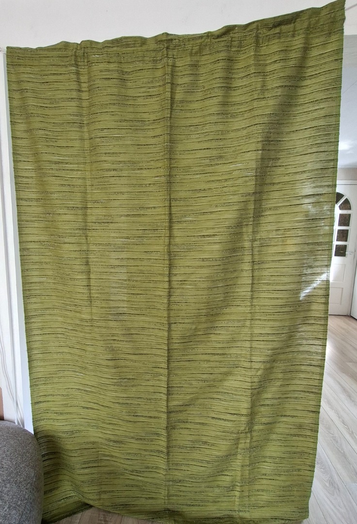 Groen gemeleerd gordijn met een lengte van 2,17 meter en een breedte van 1,30 meter. Aan de bovenkant zitten 2 tunnels waar je een gordijnroede door kan doen. Handig gordijn voor een deur om bijvoorbeeld de kou buiten te houden.