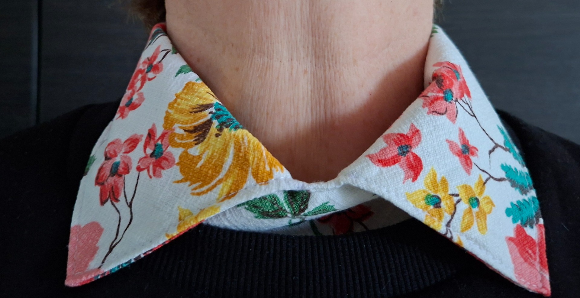 Los kraagje voor onder je trui en afgewerkt met een knoopje aan de achterkant. Gemaakt van katoen.
